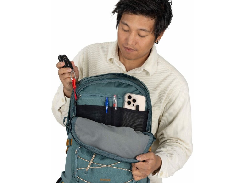 Tento všestranný a odolný batoh nabízí perfektní organizaci vašich věcí a pohodlí při nošení. Díky polstrované přihrádce na notebook bude vaše elektronika v bezpečí. Má postranní stahovací popruhy. Do skrytého prostoru v přední části můžete ukrýt všechny volné popruhy a díky několika kapsám, přihrádkám a vnitřnímu organizéru si udržíte ve věcech pořádek. Když potřebujete nějaký prostor navíc, ale batoh je už plný, určitě oceníte stahování pomocí elastických šňůrek v přední části, kam můžete narychlo schovat bundu nebo třeba cyklistickou helmu.