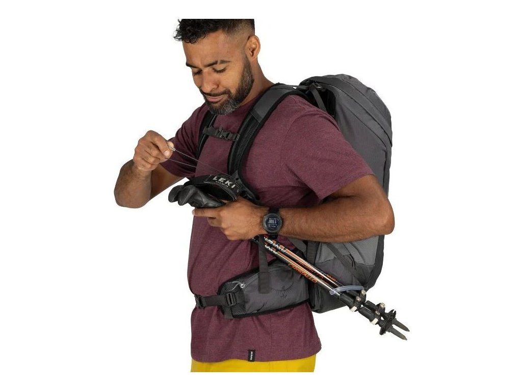 Batoh se vyznačuje hlavní přihrádkou s horním přístupem na zip, roztaženými bočními kapsami a kompatibilitou s vodními rezervoáry. Další nezbytností je možnost upevnění trekingových holí a cepínů.
