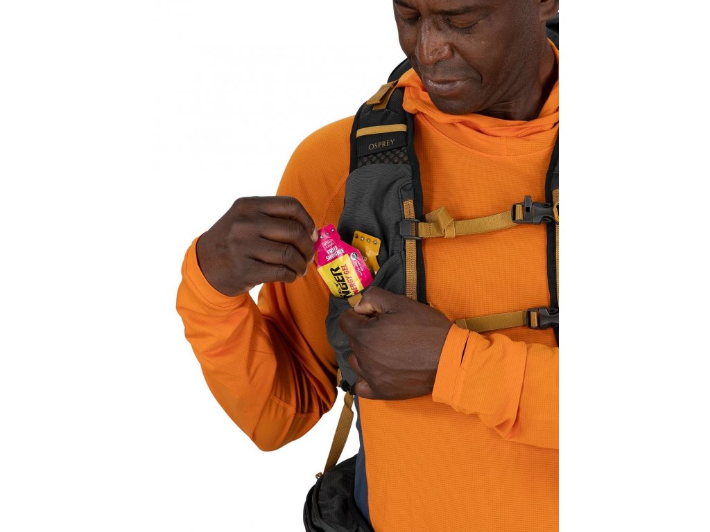 - Stretch-mesh přední kapsa pro rychlé uložení bundy nebo helmy