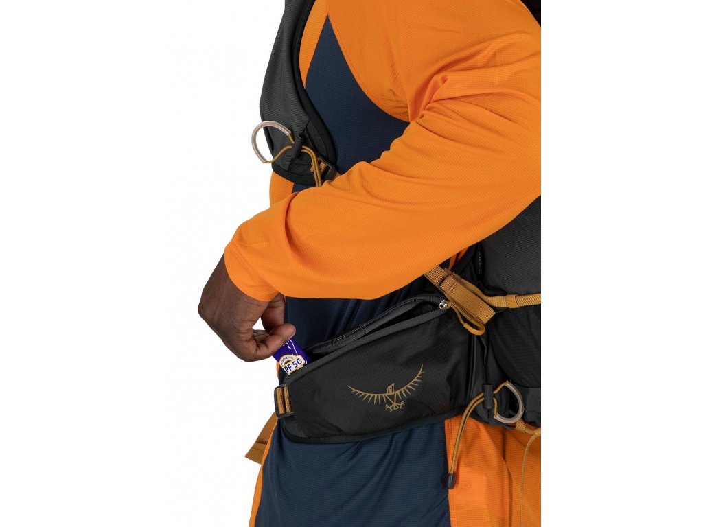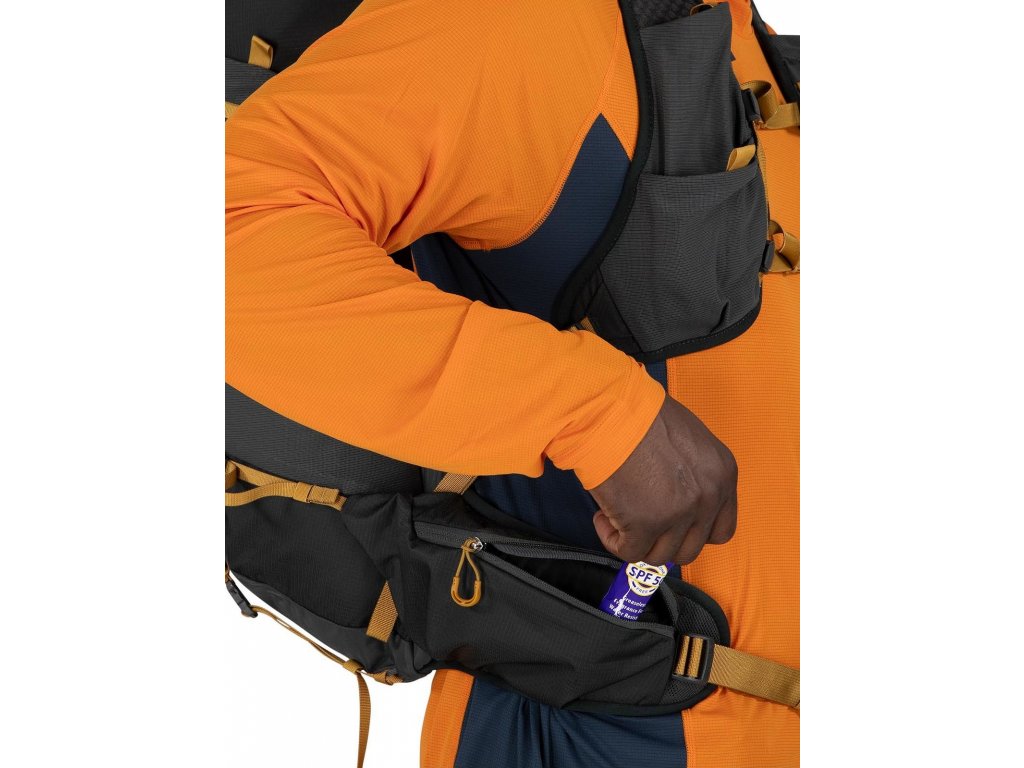 - kapsy na ramenních popruzích a bederním pásu