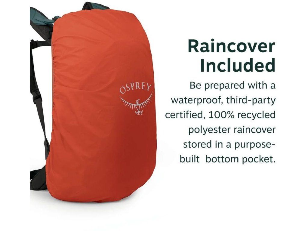 - integrovaná pláštěnka uložená v kapse na spodní straně batohu