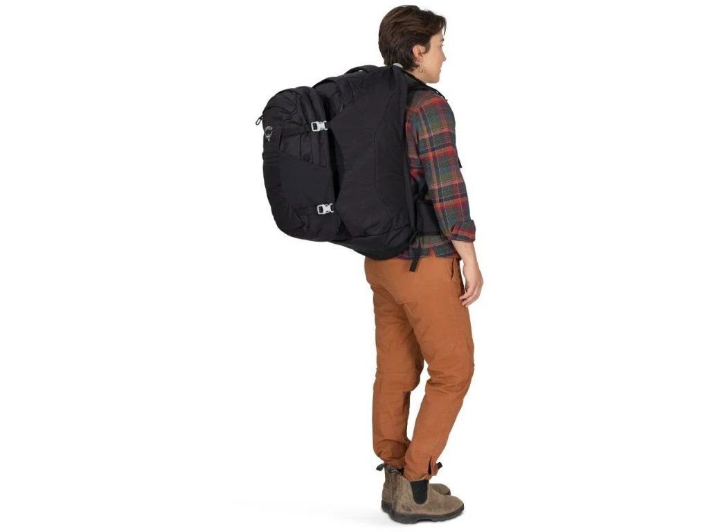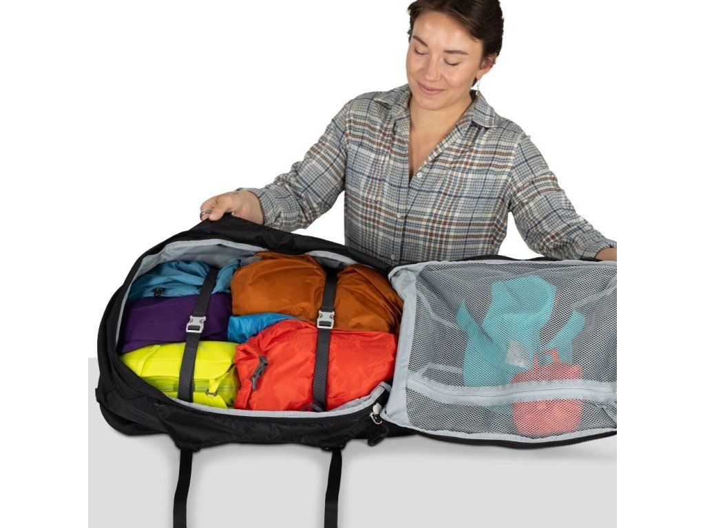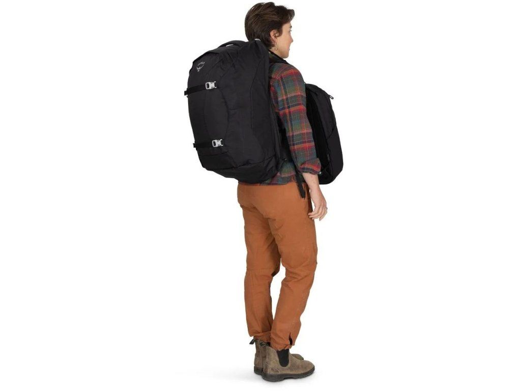 - rozdělení objemu: hlavní batoh 40 l + denní batoh 15 l