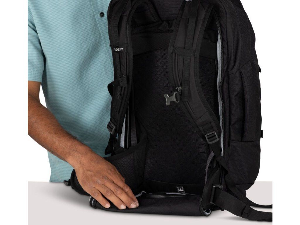 Farpoint 55 kombinuje 40litrový hlavní batoh s univerzálním odnímatelným 15litrovým denním batohem, což zajišťuje maximální flexibilitu na cestách. Díky prodyšnému, nastavitelnému systému nošení a nosnému rámu pro odlehčení zátěže spojuje tento cestovní systém prvky trekingového batohu s praktickými vychytávkami. Splňuje většinu požadavků na příruční zavazadla pro vnitrostátní lety — hlavní batoh můžete uložit do přihrádky nad hlavou a menší batoh použít jako osobní zavazadlo.