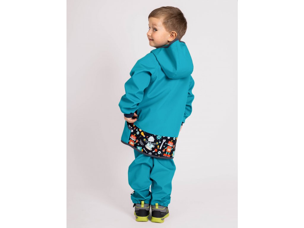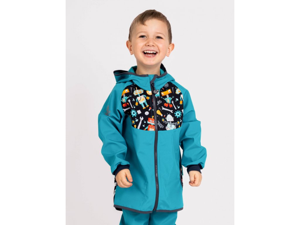 Unuo, Dětská softshellová bunda bez zateplení Basic, Smaragdová, Roboti