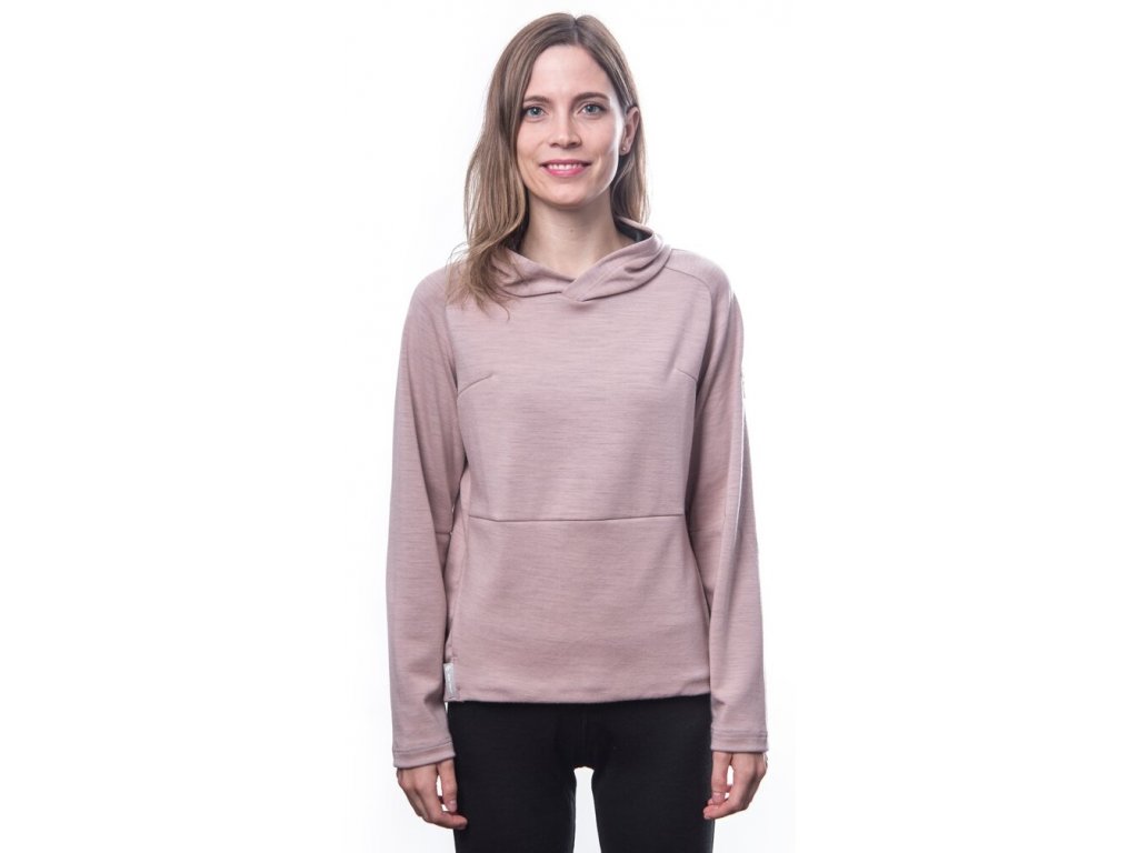 SENSOR MERINO UPPER traveller dámská mikina s kapucí dusty pink dámská mikina