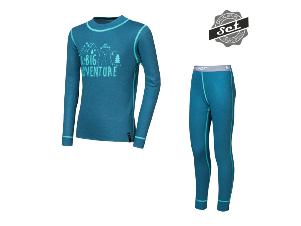 SENSOR DOUBLE FACE SET ADVENTURE dětský triko dl.rukáv + spodky safír