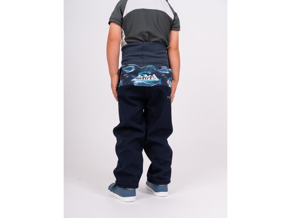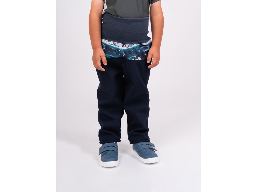 Unuo, Batolecí softshellové kalhoty s fleecem Basic, Tm. Modročerná, Tučňáci