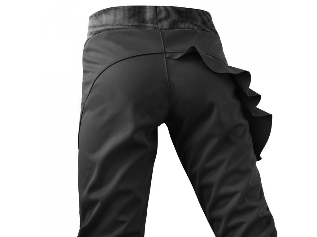 Fantasy softshellky jsou fantazií každé maminky. Představte si kalhoty s elegantním volánkem, úzkého a přiléhavého střihu, které si vaše princezna obleče ráno do školy, vyšvihne v nich násobilku na jedničku a cestou domů si v nich užije nezřízené venkovní lumpačení v kalužích. Na levé nohavici vzadu jsou kalhoty opatřeny reflexním prvkem, protože bezpečí je vždy až na 1. místě! Společně s funkční elegancí.
