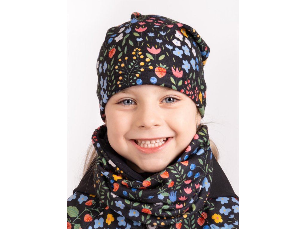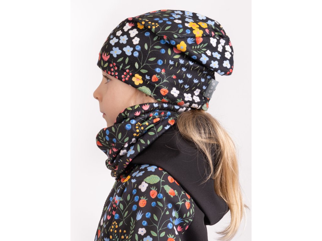 Unuo, Dětský nákrčník z fleecu Basic, Černá, Zahrada