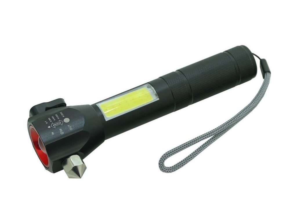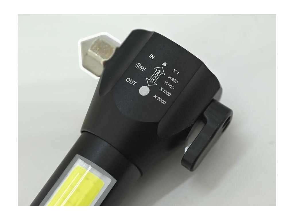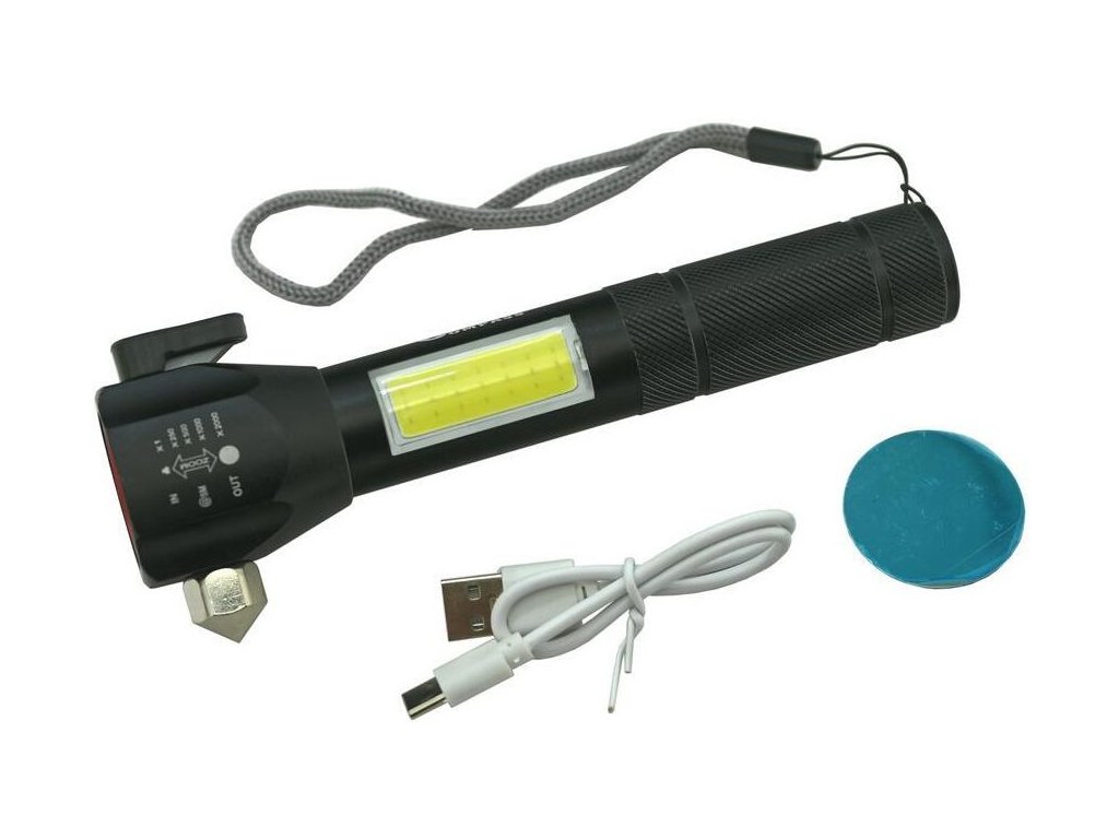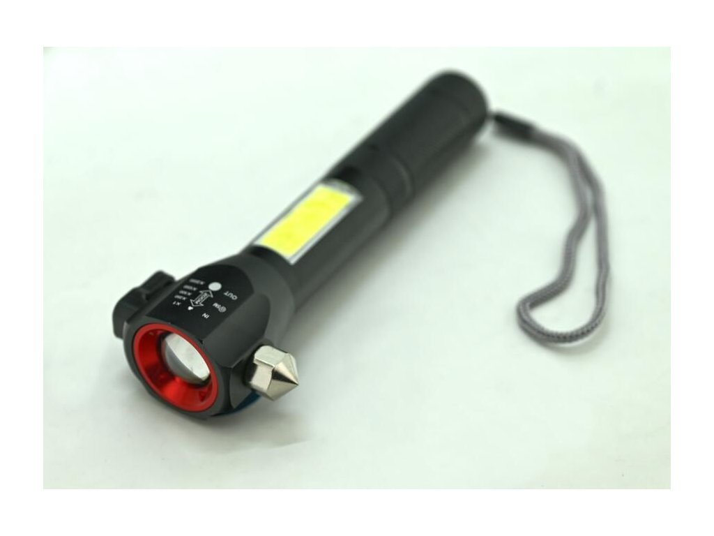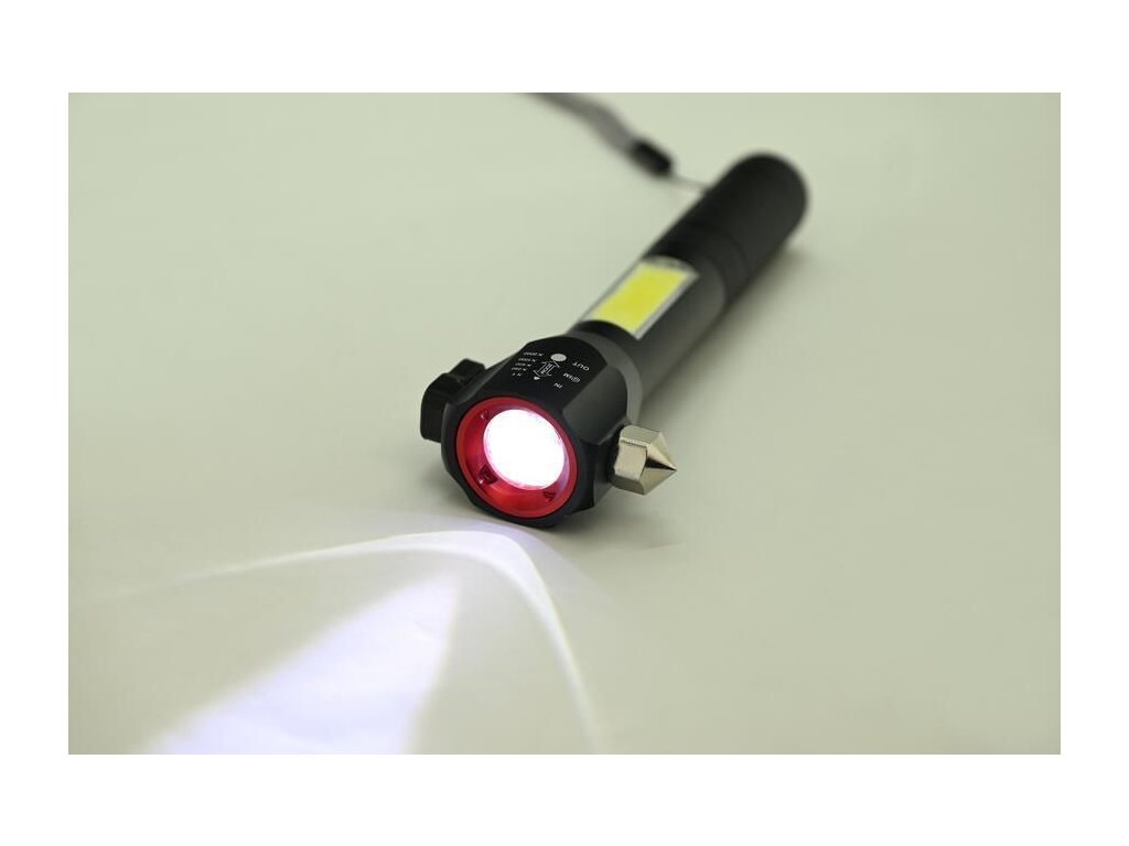 - další výbavou svítilny je řezač pásů a hrot na nouzové rozbití skla na vrchní části svítilny
