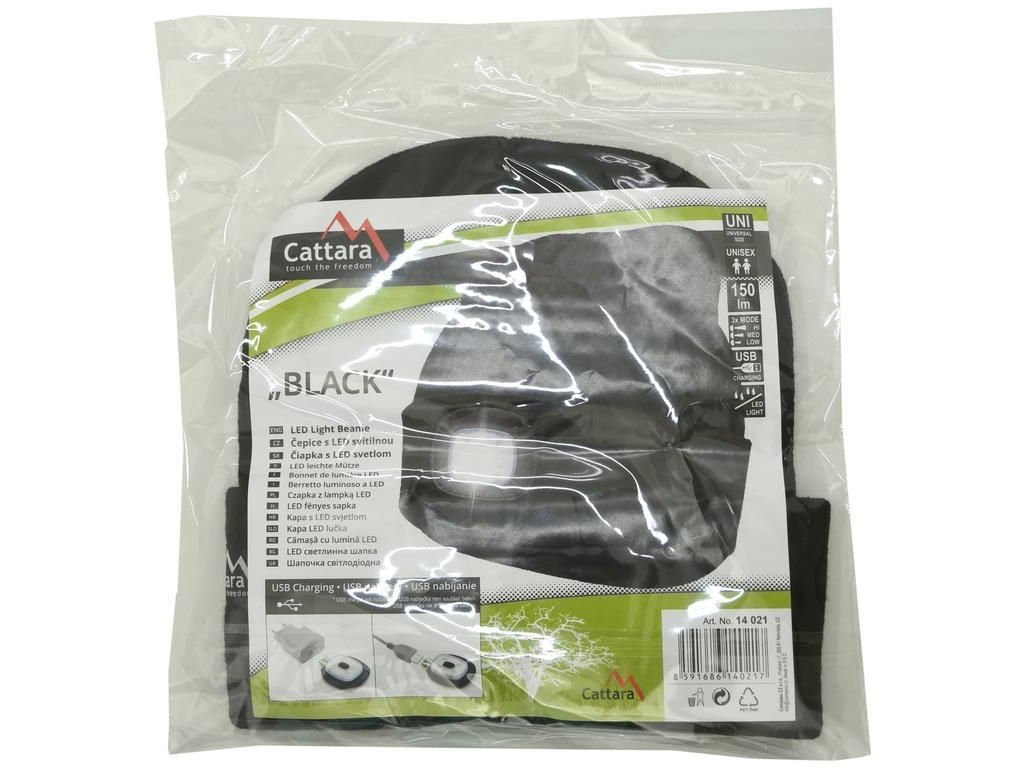 Cattara Čepice BLACK s LED svítilnou USB nabíjení čepice