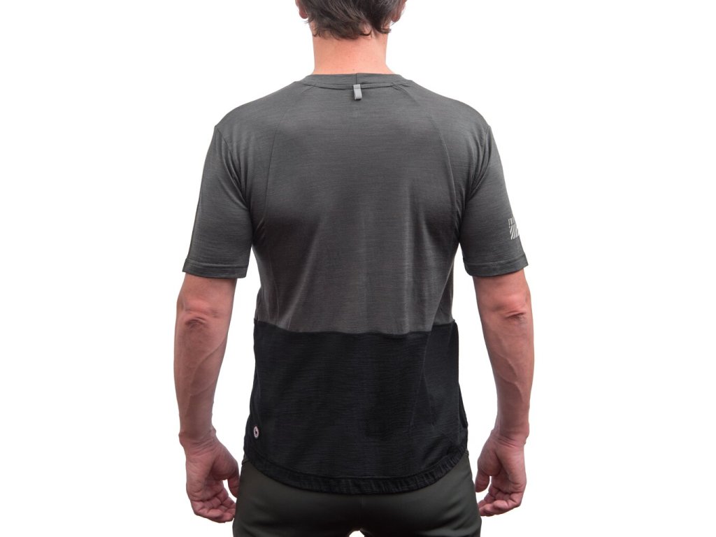 Cyklistický dres volného střihu doplněný o přední kapsu s logem. Úplet Merino Air garantuje prodyšnost a anti-odor funkci. Tvarová stálost je zajištěna 10 procenty polyamidu.