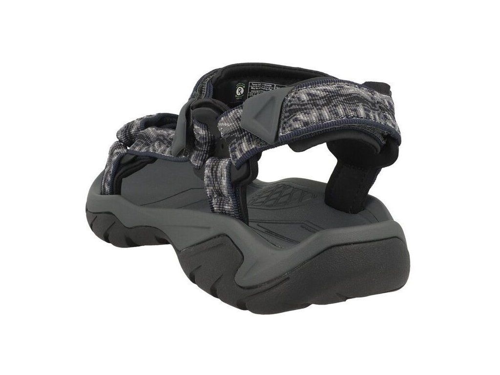 Terra Fi 5 Universal jsou sandály značky Teva s kvalitní podrážkou, která má skvělou přilnavost na mokrém povrchu. Měkký Shoc Pad v patní části zaručuje zvýšenou absorpci nárazů. Sandály mají výrazně odolnější a stabilnější tvarovanou PU mezipodešev. Nártové pásky jsou vyrobeny z pevnější tkaniny. Tříbodové stahování dovoluje optimální dotažení kolem chodidla. K vysokému komfortu během nošení dále přispívá měkký došlap a příjemné polstrování.