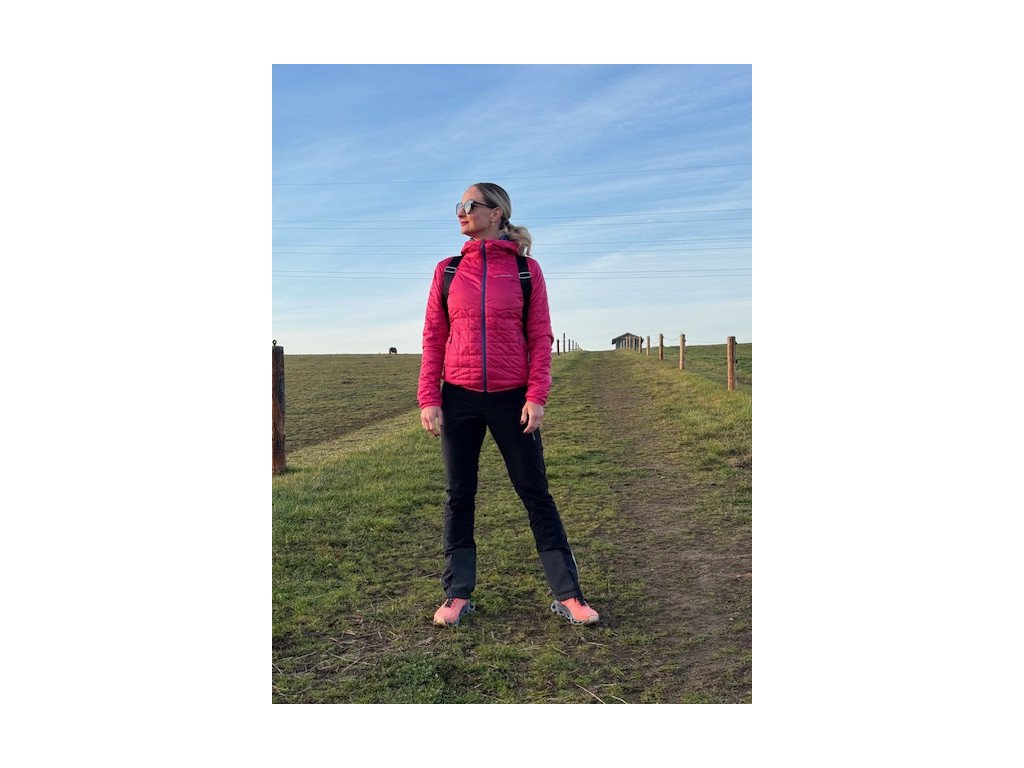 Lehká universální sportovní oboustranná bunda určená pro různé outdoorové aktivity, krátké procházky do hor, nebo na výlety do města v chladnějších dnech. Vnitřní a vnější strana v různých barvách a provedení, na jedné straně hladká a na druhé straně prošívaná s lehkou výplní s dutého vlákna a vyteplenou kapucí. Integrovaná transportní kapsa pro složení do kompaktnější a praktičtější formy pro uložení do batohu.