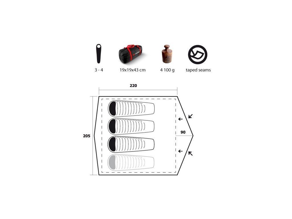 Vnější stan: 100 % polyester, 3000 mm H2O