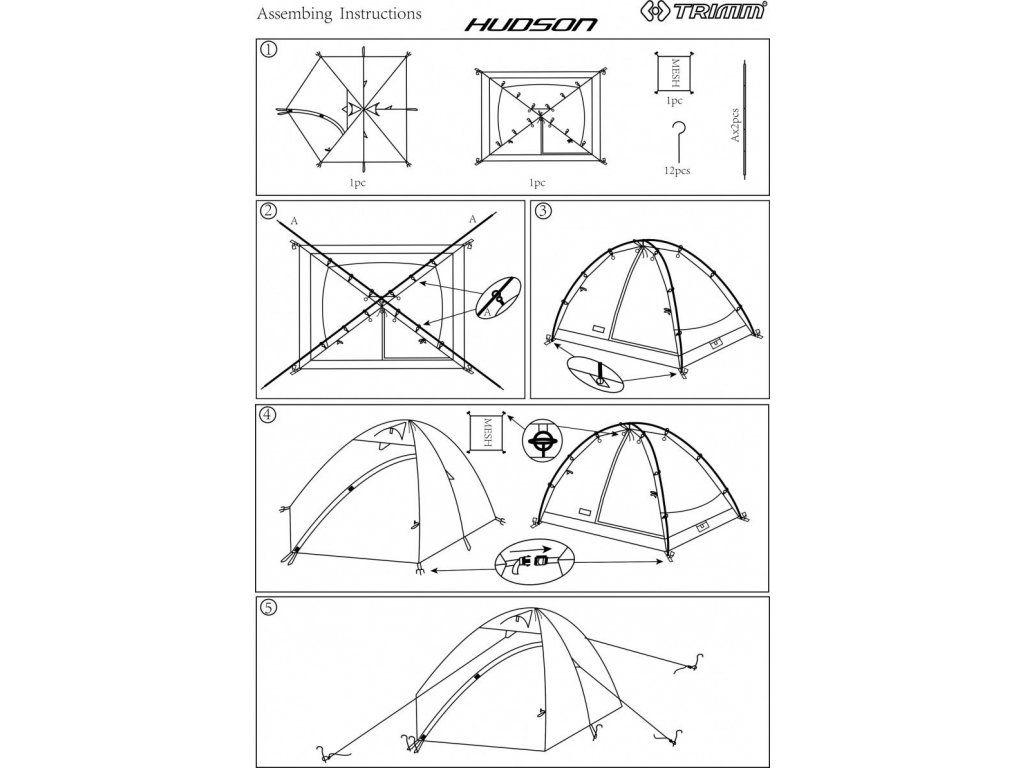 Turistický stan do kempu Trimm Hudson – je určen zejména pro kempování rodin jedním nebo dvěma malými dětmi. Vnitřní rozměr stanu je 220×205 cm. Má jednu dostatečně velkou apsidu na odložení vybavení a jeden vchod. Výhodou stanu je dostatečný komfort při nízké hmotnosti a rychlá stavba.