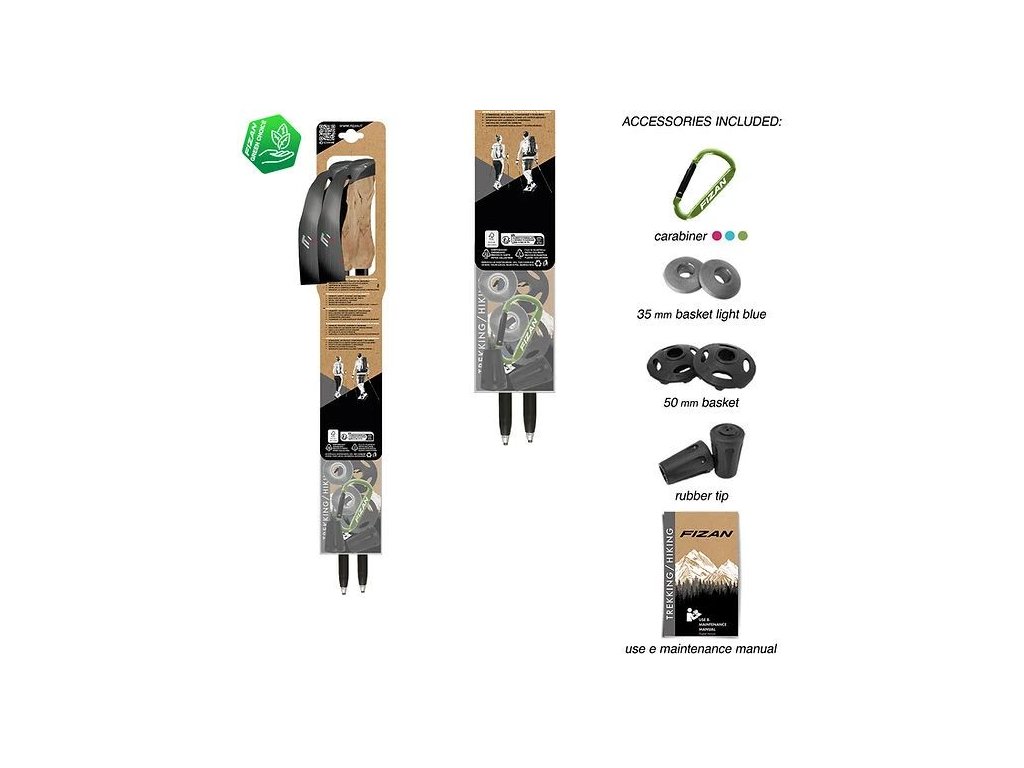 Ergonomická rukojeť z EVA pěny poskytuje pohodlný úchop při delší chůzi a doplňuje ji polyesterové poutko. Hole jsou vybaveny hrotem z tvrdokovu pro jistou oporu v terénu. Design je vytvořen technologií sublimace, která zajišťuje čistý minimalistický vzhled a dlouhou životnost grafiky. Součástí balení jsou také dva talířky (35 mm a 50 mm) a ochranné krytky hrotů.