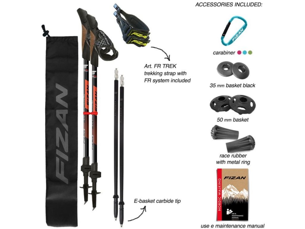 Fizan R-EVOLUTION PRO red + bag + sttrap 58-130 cm trekingové hole